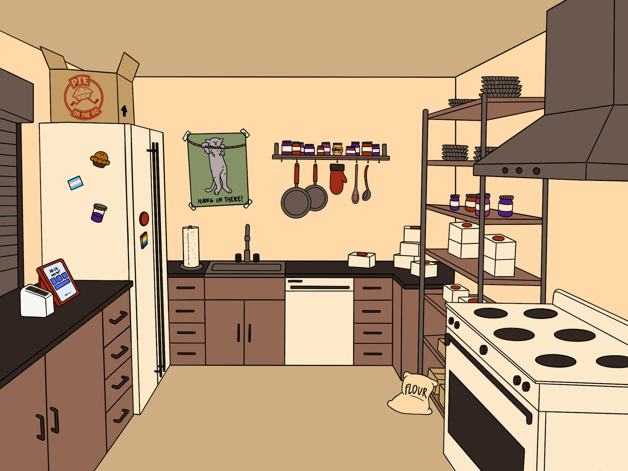 One of my teammates, Brooklynne Scivally, created a rough mock-up of what the interior would look like with appliances. With her help, I created the two pieces shown below. I aimed to make the space look lived-in while not adding too many complex details. With the environment mock-ups finished, we were able to start modeling.