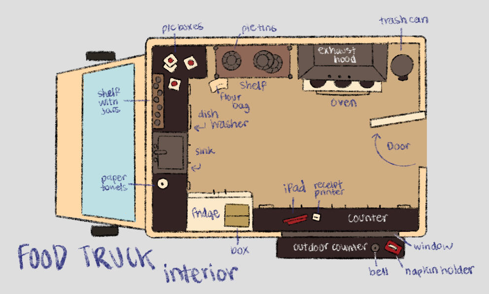 Initial food truck top-down view created by Brooklynne Scivally. I made additional refinements.